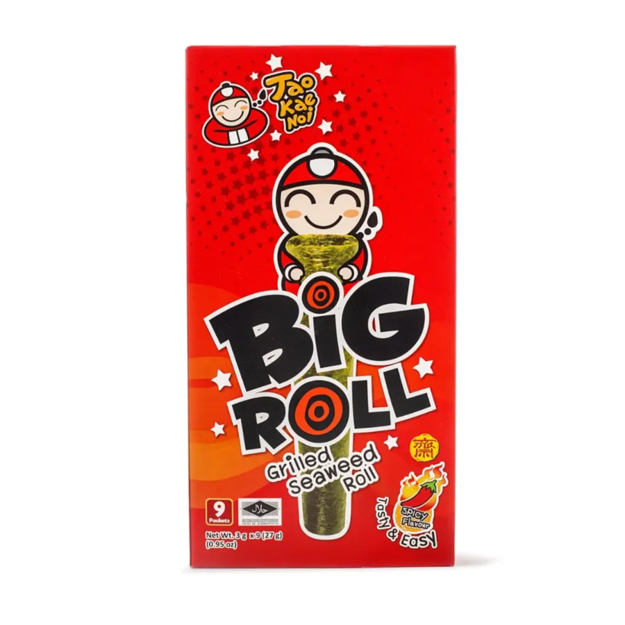 Indulge in the bold and fiery flavors of Tao Kae Noi Grilled Bigroll Spicy. Each bite-sized seaweed snack is packed with a tantalizing blend of grilled goodness and spicy kick, perfect for those who crave a savory and satisfying snack. Made with premium quality ingredients, this 27g pack is ideal for on-the-go snacking or as a delicious addition to any meal. Experience the irresistible taste of Tao Kae Noi Grilled Bigroll Spicy and elevate your snacking game to a whole new level.