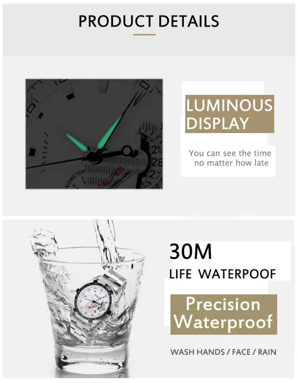 Luxury Men's Fashion Watch Waterproof Luminous Sports Date 50mm Alloy Case Glass Dial Window Leather Quartz Wristwatch for Men